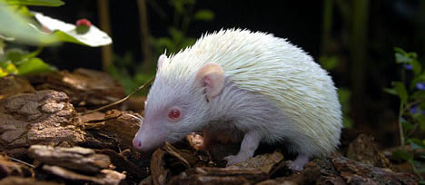 Only one in ten-thousand hedgehogs are born truly albino, with red eyes and completely white skin. Because of the rarity of it, and because it’s so darn cute in a creepy “I could steal your soul” kind of way, here it is.
