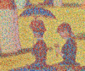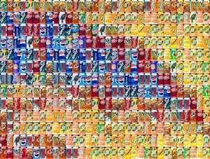 ….and many more. Below are three images of “Cans Seurat,” 2007, depicting 106,000 aluminum cans, the number used in the US every thirty seconds.