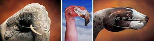 Guido Daniele is an Italian artist whose specialty is a little more hands-on than many others. That’s right, the above animals are all painted hands, or “handimals” as the artist calls them. Of course, Signor Daniele has a lot more at “his website”:http://guidodaniele.com including more “handimals”:http://guidodaniele.com/en_bodypaint01.htm, “trompe l’oeil murals”:http://guidodaniele.com/en_trompe1.htm and “body painting (nsfw)”:http://guidodaniele.com/en_fotografie1.htm. His “biography”:http://guidodaniele.com/en_biografia.htm has more about him.