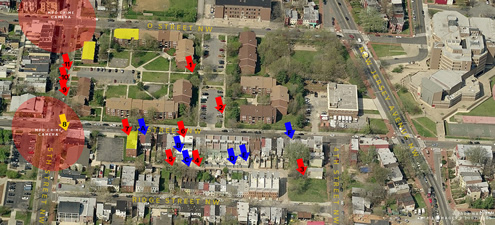 Yellow blocks — Suspected residences of neighborhood trouble makers