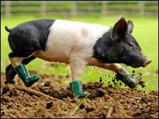 The “BBC Article”:http://news.bbc.co.uk/2/hi/uk_news/england/north_yorkshire/7448006.stm explains that the piglet was afraid of wallowing in the mud, leading her owners to fit her with Wellies, overcoming the problem. Andrew and Debbie Keeble own a sausage company but no longer plan to slaughter Cinders, the mysophobic piglet.